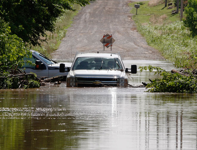 Согласно данным метеорологов, вода в реке Миссури пока держится на 2,7 м выше уровня берега, а Миссисипи стала выше более чем на 3 м.
