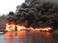 «Со стороны БЗС 12 БТР», – пишет пользователь @angl_f_dth в Twitter. «Командир самообороны: Славянск полностью окружен, над городом кружат около 20 вертолетов», – передает @meptingmomi.