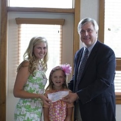 Лианна и Мари-Максвелл передают чек в организацию «Сумка самарянина».