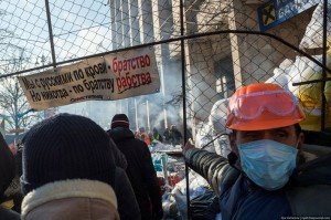 Отдохнув дома у нашего товарища и взяв всё необходимое мы поехали на майдан. На майдане мы хотели достать каски чтобы быть ближе к событиям и чем-то помогать. Но достать их не удалось, может плохо искали, может с ними дефицит. Пока искали заметили также, что основной контингент людей – это люди лет 30, а не безбашенная фашистская молодёжь как уверены крымские знатоки. И когда бродишь мимо взрослых здоровенных мужиков в касках, с оружием и щитами понимаешь всю серьёзность происходящего.